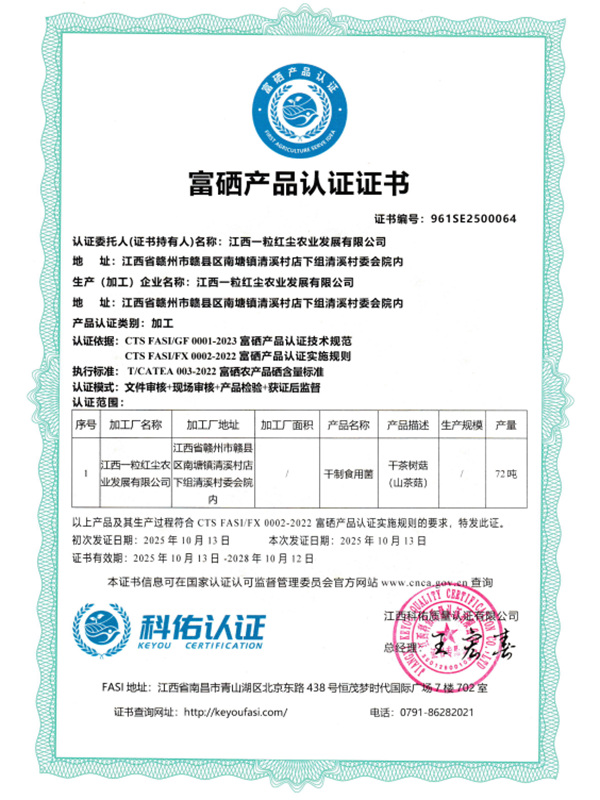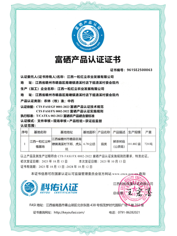 富硒產(chǎn)品認(rèn)證證書
